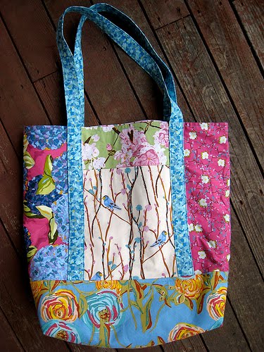 Since returning to sewing nearly two years ago, one of my favorite places to visit online is Pink Chalk Fabrics. The owner of Pink Chalk, Kathy Mack, seems like such a lovely woman. She’s the kind of woman you just want to know- interesting and cool, but also normal and down-to-earth. When not blogging, sewing and running her shop, she designs patterns. Her sensibility is really fresh and clean. Her blog is fun and inspiring. I have long been drooling over her Mail Sack and Market Tote patterns and I have learned a lot looking at her perfect crisp points and helpful tutorials.