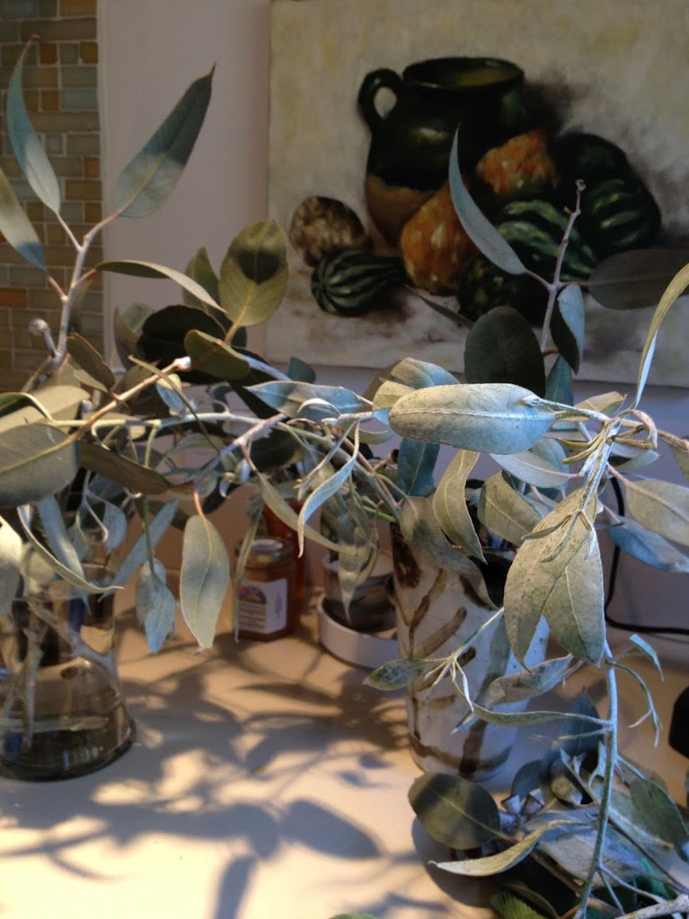 Today was the first backyard day in the desert. Fall is finally here. We cleaned all day–removed a zillion spider webs, trimmed everything in sight, and hosed it all down. The inside of our house is now fragrant and full of eucalyptus branches in vases. We even made this impromptu outdoor living room. Isn’t that metal gate awesome? I can’t remember the artist’s name—I think he’s from Utah.